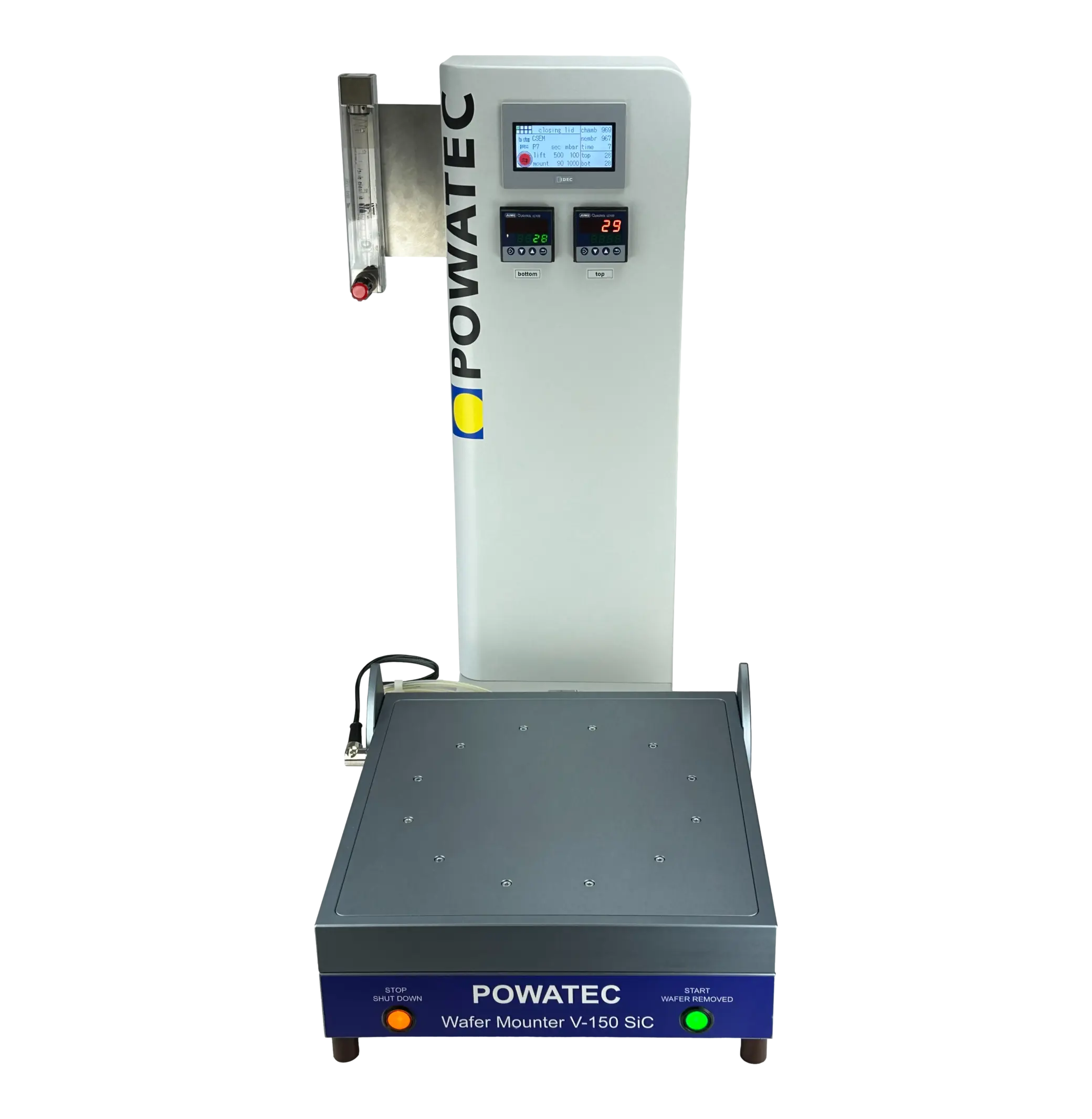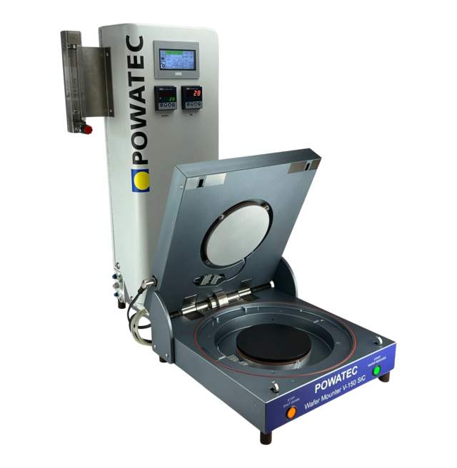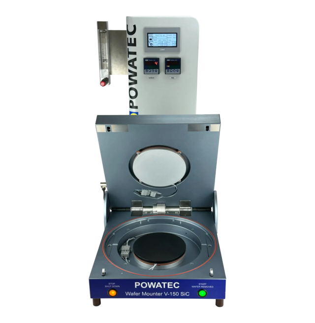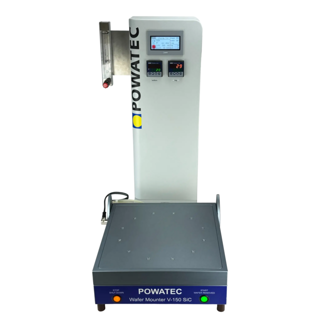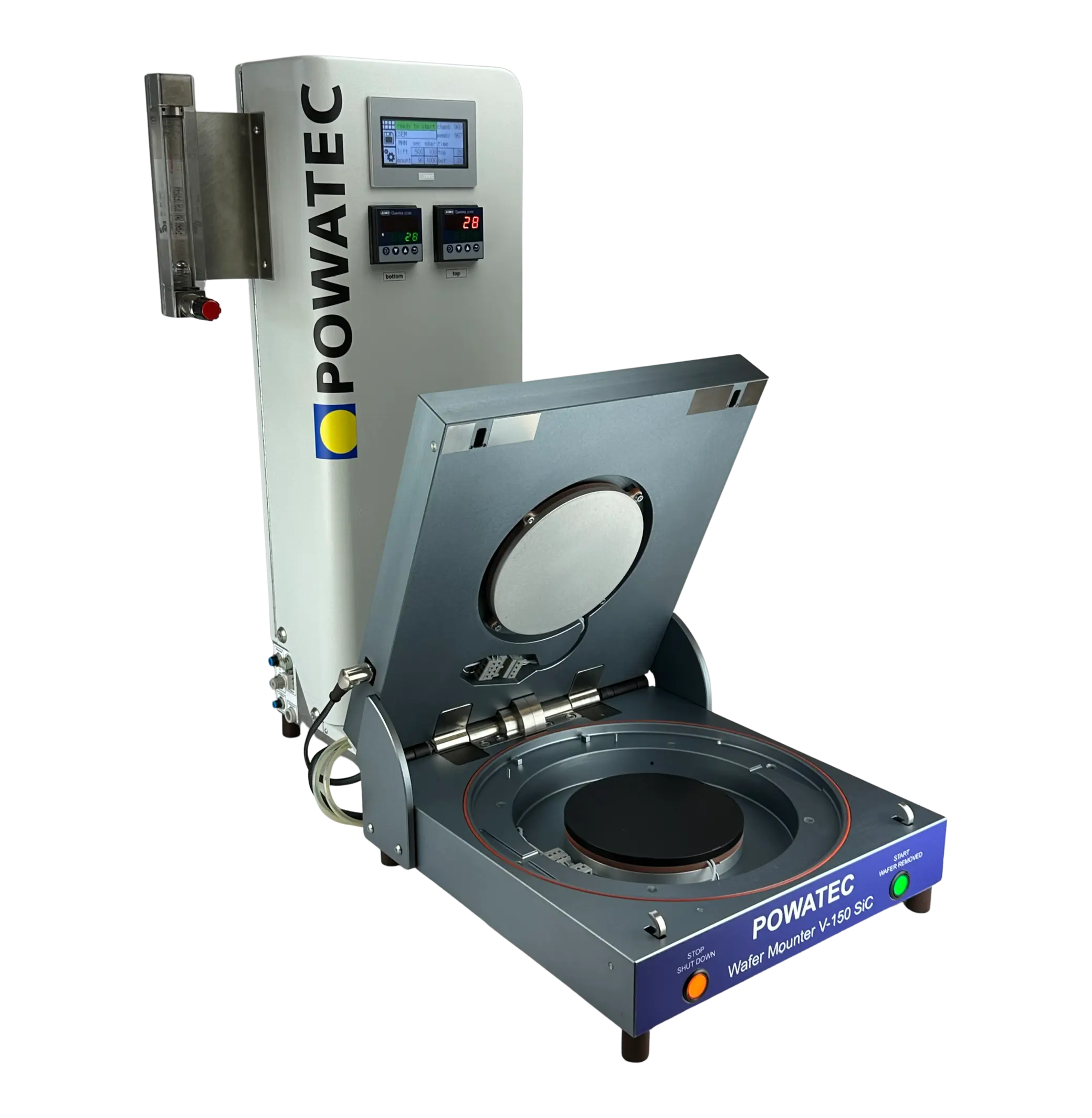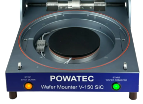 Manufactured and developed in Switzerland, the V-150 SiC Wafer Mounter from Powatec is the ideal device for precisely mounting Silicon Carbide wafers, sensitive or broken wafers, and curved wafers onto 6-inch dicing frames in a heated process.