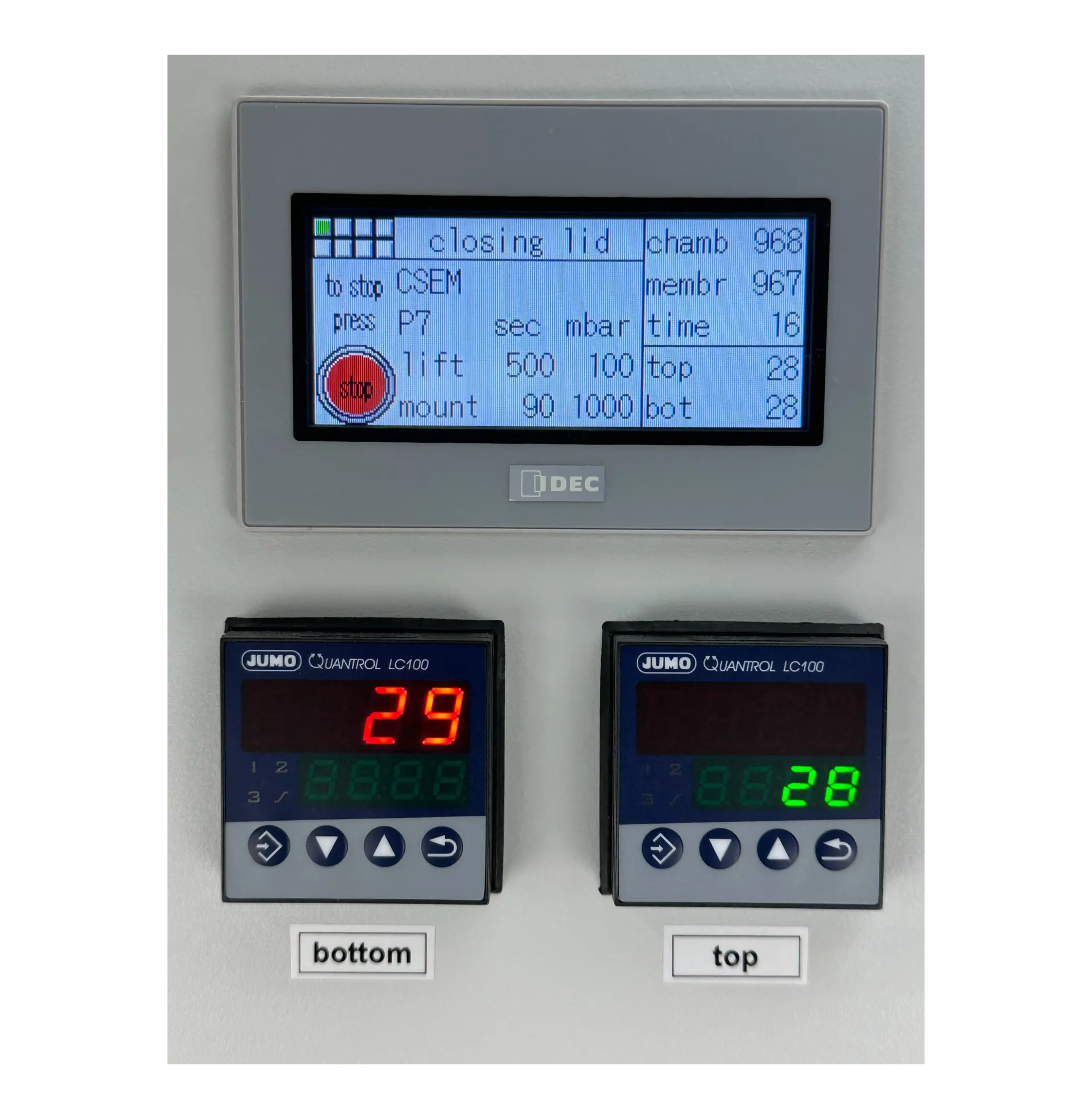 The device’s flexibility allows the user to even control the duration of the pre-heating step, the speed at which the chamber opens and closes, the speed at which the bottom chuck lifts and lowers, and the force used to press the wafer and tape together.